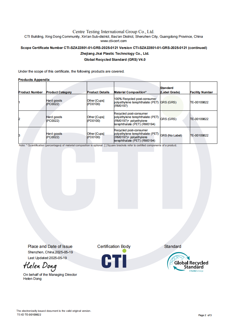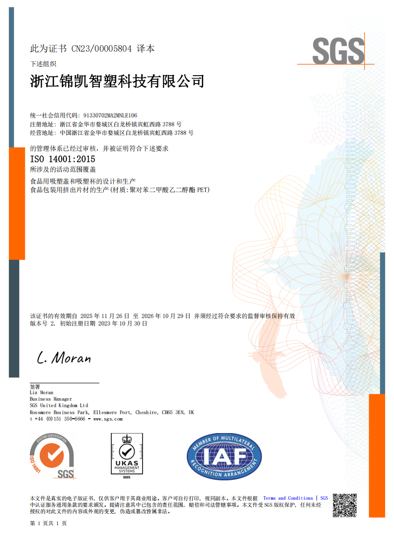 浙江錦凱智塑科技有限公司是全球領先的PET杯生產商。錦凱是中國民營企業500強正凱集團旗下的全資子公司,浙江正凱集團創建于1992年,成立于1997年,是一家專注于全球PET與紡織兩大產業發展的現代化標桿企業。依托集團PET綠色循環全產業鏈優勢,浙江錦凱深耕全球食品級PET新材料包裝領域,充分釋放材料核心價值,構建起包裝行業全生命周期低碳發展范式,引領綠色包裝新方向。
